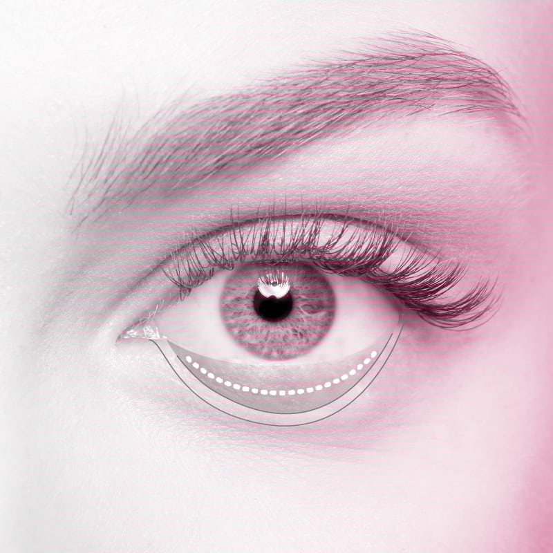 Die Erschlaffung des Gewebes im Bereich der Unterlider findet sich meist erst etwas später im Laufe des Lebens. Der Hautmantel, das Unterhautbindegewebe und auch die Muskulatur verlieren ihre Spannkraft, was zu einem Absacken des Gewebes führt. Es entstehen die als „Tränensäcke“ bezeichneten Veränderungen. Für das untere Augenlid kann ein Schnitt entweder auf der Innenseite des Augenlids (transkonjunktival) oder auf der Außenseite (transkutan) vorgenommen werden.
